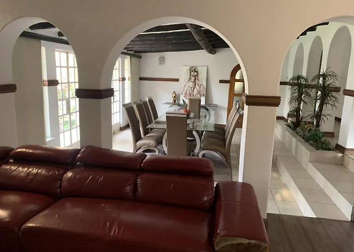 Il Safari Apartments -Beautiful 3 Bedrooms, 10-Seater Dining, Tv Room & Garden offre agli ospiti opzioni di self-catering come un bollitore elettrico, un frigo e una vetreria. L'aeroporto Internazionale di Lanseria è raggiungibile in 34 minuti di auto. Questo alloggio ha una piscina insieme con una terrazza.